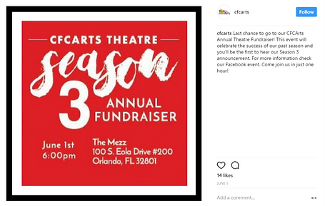 In my time at CFCArts, I assisted in creating content for the organization's Instagram account. Below are some examples of posts I created.